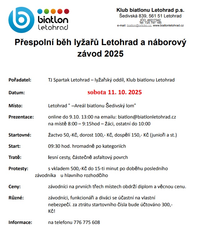 Ahoj sportovní nadšenci, v sobotu 11.10. od 9.30 startuje přespolní běh v Šedivském lomu. Registrace je možná do 9.15 na místě. Těšíme se na vás.